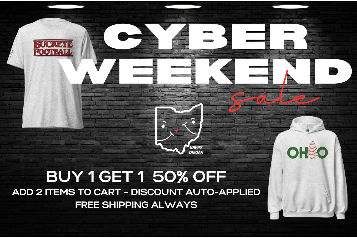 Being a Happy Ohioan is a feeling: the pride of small towns, backroad drives, fall lights, and the moments that make Ohio feel like home. Our apparel lets you carry that feeling wherever life takes you.